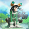 - La figura de Tsuyu Asui con su traje de heroe Froppy